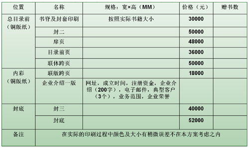 1. 平面廣告發(fā)布:本書的封二、封三、封底、內(nèi)部彩頁等可以直接發(fā)布合作商廣告,形象直觀、直接提升品牌價(jià)值,效果突出。 2. 廠商解決方案刊登:以云計(jì)算行業(yè)的實(shí)際需求出發(fā),結(jié)合應(yīng)用的熱點(diǎn)、難點(diǎn)問題給出合適的技術(shù)及產(chǎn)品解決方案,結(jié)合案例進(jìn)行講解,既解決了行業(yè)客戶的問題,同時(shí)也是為廠商的產(chǎn)品作出放大的品牌宣傳。 3. 專版定制服務(wù):在《中國云圖》內(nèi)容不變的提前下,結(jié)合客戶需求,重新設(shè)計(jì)相應(yīng)的封面與其他廣告位,提供定制的版本,每款定制版本發(fā)行量暫定為500本,發(fā)行渠道由中國IDC圈與定制客戶雙方研究制定。 4. 禮品裝包裝贊助:本次資訊大全的發(fā)行將計(jì)劃推出相應(yīng)的《中國云圖》禮品裝,設(shè)計(jì)專門的禮品袋,一袋兩本;贊助商可以通過贊助禮品袋制作費(fèi),取得禮品袋廣告獨(dú)家發(fā)布權(quán)。 5. 各版位贊助價(jià)格參考表: