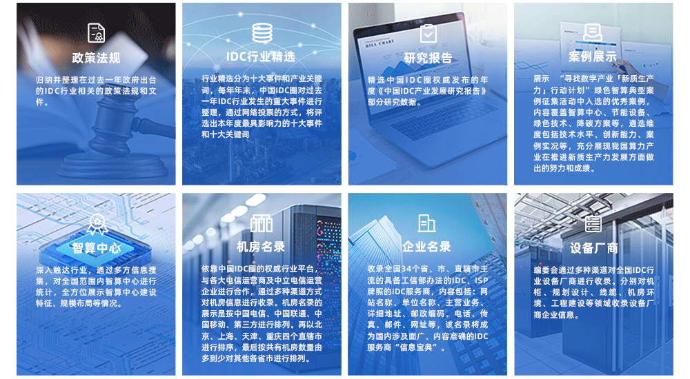 《中國IDC行業(yè)資訊大全》是一本深入影響中國IDC產(chǎn)業(yè)的工具書,內(nèi)容上集合了八大核心內(nèi)容,包括:IDC行業(yè)精選、政策法規(guī)、研究報(bào)告、點(diǎn)亮計(jì)劃、智算中心、機(jī)房名錄、服務(wù)商名錄、IDC設(shè)備廠商名錄,自2006年創(chuàng)刊已出版19期,獲得業(yè)界及上下游產(chǎn)業(yè)精英人士的高度評(píng)價(jià)和認(rèn)可,已成為用戶選擇IDC服務(wù)商和數(shù)據(jù)中心的首選參考材料。