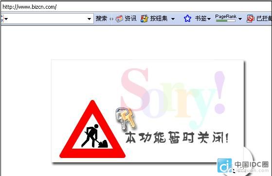 中國IDC圈7月2日報(bào)道:下午13:00左右,筆者接到網(wǎng)友反映,商務(wù)中國(www.bizcn.com)的DNS出現(xiàn)問題,致使大量使用商務(wù)中國DNS服務(wù)的域名無法訪問。隨后筆者撥通了商務(wù)中國的客服熱線,電話一起處于占線狀態(tài),同時(shí)網(wǎng)站上也沒給出任何公告,到15點(diǎn)10左右訪問網(wǎng)站時(shí)出現(xiàn)“本功能暫時(shí)關(guān)閉”的提示圖片,網(wǎng)站完全訪問不了。