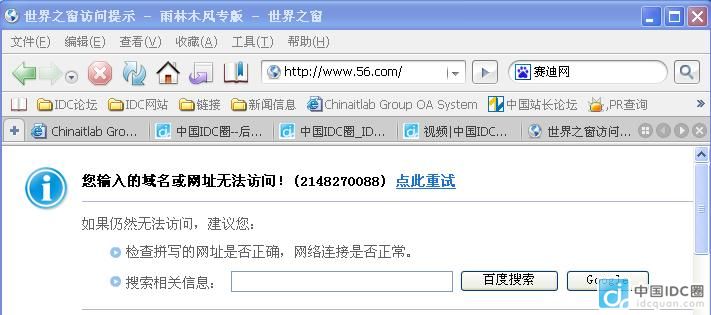 中國IDC圈7月30日?qǐng)?bào)道:今天11點(diǎn)30左右據(jù)網(wǎng)友提供信息,我樂網(wǎng)(56.com)再此出現(xiàn)故障,筆者在北京測(cè)試無法正常訪問,同時(shí)獲知山東地區(qū)也無法訪問,具體原因現(xiàn)在尚未知曉,中國IDC圈會(huì)繼續(xù)關(guān)注事件發(fā)展。 相關(guān)報(bào)道: |