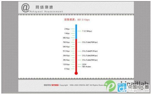 網(wǎng)速測(cè)試(加速后) 從上面兩張圖中可以很清楚的看出,在使用盈速通之前筆者連接到東方熱線的速度為197.7Kbps,而在連接上盈速通網(wǎng)絡(luò)加速軟件之后其連接速度高達(dá)861.9 Kbps,加速效果相當(dāng)明顯。 |