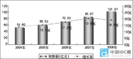 2004年~2008年中國機(jī)房一體化市場(chǎng)規(guī)模