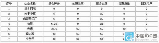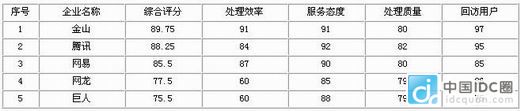 八、企業(yè)投訴處理情況 315消費電子投訴網(wǎng)根據(jù)網(wǎng)游運營商的投訴處理情況,從處理效率、服務(wù)態(tài)度、處理質(zhì)量和回訪用戶四方面,對各網(wǎng)游運營商進行評分,上述四項評分的平均分為綜合評分。315消費電子投訴網(wǎng)根據(jù)綜合評分的高低,公布處理較好和較差的企業(yè)排名。 下面是各評分指標的相關(guān)介紹: 綜合評分:根據(jù)企業(yè)處理效率、服務(wù)態(tài)度、解決效率、回訪用戶四項指標的平均分,上述四項指標滿分均為100分。 處理效率:企業(yè)接到315TS轉(zhuǎn)過去的投訴后,與消費者溝通、反饋處理結(jié)果的時效。 服務(wù)態(tài)度:企業(yè)對待315TS工作人員和消費者的態(tài)度問題。 處理質(zhì)量:企業(yè)對315TS反饋投訴的處理情況,消費者對處理結(jié)果的滿意程度。 回訪用戶:接到315TS反饋的投訴信息后,是否聯(lián)系消費者進行溝通協(xié)調(diào),不直接聯(lián)系消費者了解情況,僅僅回復情況作相應(yīng)解釋說明,評分相對會較低。 處理情況較好企業(yè)排名 根據(jù)網(wǎng)游運營商對315TS反饋投訴的實際處理情況,315TS網(wǎng)游投訴處理專員對所負責的企業(yè)處理情況進行了客觀打分,結(jié)果投訴處理情況較好的前五名企業(yè)分別是:金山、騰訊、網(wǎng)易、網(wǎng)龍、巨人網(wǎng)絡(luò)。 從各企業(yè)的評分情況來看,處理質(zhì)量普遍評分不高,玩家對投訴處理結(jié)果滿意度不高,玩家反饋情況多對處理結(jié)果表示不滿,而在回音壁留言感謝、對處理結(jié)果表示滿意的,以騰訊、網(wǎng)易、金山的玩家為多,而這三個企業(yè)的處理質(zhì)量分數(shù)較高。 能夠回訪投訴用戶的網(wǎng)游運營商不多,而能夠?qū)γ恳粋投訴用戶都進行回訪的運營商更是少之又少。金山和騰訊是在回訪用戶這一項做得最好的運營商,幾乎做到了回訪所有能聯(lián)系上的投訴用戶,做好安撫及處理工作的同時,也讓用戶感受到企業(yè)對用戶的尊重,故在此項評分中拿到了95以上的高分。此次評分將該項單列出來,意在體現(xiàn)客服工作的重要性,客服并非僅僅是像機器人一樣回復,只會Ctrl+C和Ctrl+V,而應(yīng)該提供更人性化的服務(wù),安撫好客戶情緒,并能實質(zhì)性的給用戶提供幫助,提高用戶忠誠度。 下面就這五大運營商作相應(yīng)的點評: 金山:各方面都比較好,尤其在回訪用戶方面做得相當不錯,會主動聯(lián)系每一個投訴用戶作相應(yīng)的協(xié)調(diào)工作,即使是群體性投訴事件也不例外,在目前網(wǎng)游企業(yè)普遍對玩家投訴重視程度不足的情況下,非常的難能可貴。 騰訊:處理質(zhì)量是所有網(wǎng)游企業(yè)里最好的,投訴用戶對其處理結(jié)果滿意度也是最高的,也會逐個的回訪投訴用戶告知相關(guān)的處理結(jié)果,但反饋投訴處理結(jié)果的速度還有待提高。 網(wǎng)易:處理效率、服務(wù)態(tài)度都相當不錯,處理質(zhì)量也位于行業(yè)前列,回訪用戶方面,除了群體性投訴事件無法一一回訪投訴用戶外,均會主動聯(lián)系每一個投訴用戶處理。 網(wǎng)龍:投訴轉(zhuǎn)交過去后,網(wǎng)龍均會形成相應(yīng)的處理工單,聯(lián)系用戶處理并反饋處理結(jié)果給315TS,可能因為處理流程較為嚴格和繁瑣,投訴處理時間相對較長,故在處理效率評分上不是很理想。 巨人:服務(wù)態(tài)度及處理質(zhì)量都相當不錯,但前期巨人網(wǎng)絡(luò)與315TS的溝通不是很暢通,處理效率和回訪用戶方面做得相當不足,希望以后可以加強溝通,更好的處理用戶的投訴問題。 處理情況較差企業(yè)排名 在本次評分中,我們非常遺憾的看到,相當大一部分的企業(yè)綜合評分不及格(未達到60分),這也說明了目前國內(nèi)網(wǎng)游運營商的客服工作,相當大一部分企業(yè)是不及格的,甚至包括好幾個著名的上市公司。 經(jīng)過統(tǒng)計,處理情況較差的企業(yè)有:深圳網(wǎng)域、光宇華夏、成都夢工廠、伙聚、光通、摩力游、中華網(wǎng)。 深圳網(wǎng)域:處理情況最差的網(wǎng)游企業(yè),客服電話非常難以打通,網(wǎng)上提供的兩個客服郵箱都不回復,形同虛設(shè)。315TS工作人員多次與其客服人員溝通,客服主管不知何故,不肯與315TS工作人員直接溝通,也拒絕受理用戶投訴。面對網(wǎng)游監(jiān)管機構(gòu)尚且一味的狡辯,玩家自己面對這些客服時,會得到怎樣的服務(wù)就可想而知了。深圳網(wǎng)域的投訴量非常大,但是一點也不考慮用戶的不滿情緒,沒有一個投訴得到處理。在對待用戶的立場上,只是一味的借助QQ的平臺拉攏新用戶,卻不懂得如何維系老用戶的關(guān)系,不知道客戶關(guān)系維護的重要性,是目前投訴處理最差的網(wǎng)游企業(yè),四項指標均為零分,在對待客戶關(guān)系方面,深圳網(wǎng)域還有很多的地方需要改進。 補充說明:該份統(tǒng)計報告發(fā)布后,在業(yè)界引起了廣泛的關(guān)注,也引起了深圳網(wǎng)域的高度重視,相關(guān)工作人員致電315消費電子投訴網(wǎng),對之前的溝通不順暢情況進行解釋說明并表示歉意,同時介紹了深圳網(wǎng)域在打擊盜號方面的一系列努力和強力措施,包含:08年7月在深圳網(wǎng)監(jiān)領(lǐng)導及各地公安、網(wǎng)監(jiān)部門協(xié)助下破獲南京特大網(wǎng)游盜號案件,摧毀一個盜號團伙;在《QQ華夏