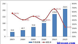 據(jù)中國(guó)IDC圈最新發(fā)布的《2012-2013年度中國(guó)IDC產(chǎn)業(yè)發(fā)展研究報(bào)告》(簡(jiǎn)稱"IDC報(bào)告")數(shù)據(jù)顯示,2012年中國(guó)IDC市場(chǎng)規(guī)模達(dá)210.5億元人民幣,增速達(dá)到23.2%,相比去年增速有較大下滑,但與歐美發(fā)達(dá)國(guó)家相比,還是保持一個(gè)較高的增長(zhǎng)速度。其中IDC基礎(chǔ)業(yè)務(wù)市場(chǎng)規(guī)模137.2億元人民幣,增速為20%,IDC增值業(yè)務(wù)市場(chǎng)規(guī)模73.3億元人民幣,增速為29.7%,增值業(yè)務(wù)成為拉動(dòng)IDC市場(chǎng)增長(zhǎng)的主力軍。 近兩年,國(guó)內(nèi)IDC產(chǎn)業(yè)呈現(xiàn)政策導(dǎo)向明顯、產(chǎn)業(yè)合并加速、基礎(chǔ)建設(shè)火熱等幾個(gè)特點(diǎn),主要得益于國(guó)內(nèi)云計(jì)算、大數(shù)據(jù)等新興產(chǎn)業(yè)的推動(dòng)…… >>了解更多 |