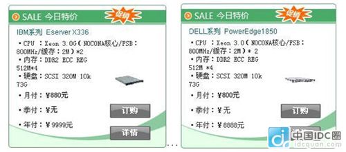 9月,帝聯(lián)特價服務器租用火爆促銷活動拉開帷幕,將盛夏熱情延續(xù)。本次推出的特價機均為Dell、IBM高端品牌服務器,全部采用Intel Xeon3.0處理器,73G SCSI硬盤,百兆共享帶寬,免費提供1個IP地址,免費解析2個域名,托管在高標準的IDC專業(yè)機房,一流的設施、一流的環(huán)境、一流的安全保證,兩年可送產(chǎn)權(quán),月付價格低至800元,年付價格僅需8888元起。 超值的配置,超低的價格,加上帝聯(lián)科技高品質(zhì)的7*24技術(shù)支持服務,讓您心動到底。帝聯(lián)服務器租用特價風暴,數(shù)量有限,不容錯過,詳情請訪問帝聯(lián)科技網(wǎng)站www.dnion.com .
